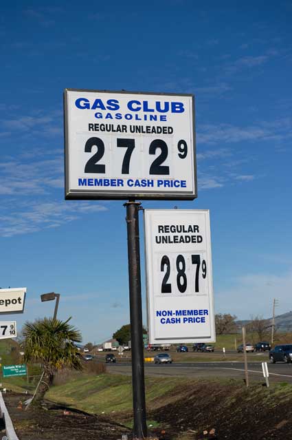December 30th gas prices off Highway 101 near Petaluma in California.