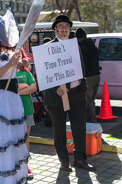 The two strips of bacon, scrambled eggs, country potatoes, toast, fruit cup and coffee for breakfast, finishing up not long before nine to set out for home, passing by an electric motor scooter someone had pushed over on its side that hadn't been there when I was walking in. Another of whatever flower this is in the planters not far beyond, a bicycle rider at the 580 Overpass light and then home to take the selfie, no sign of scooters lined up along the lake. Hadn't seen any walking in earlier either.