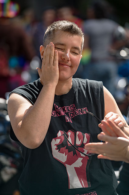 The plain waffle with sliced bananas and strawberries, fruit cup and coffee, finishing up some eight minutes before nine to walk to the barber shop taking the usual pictures, arriving at nine to have the hair cut short this time, finishing and walking the rest of the way home to take the selfie in the lobby, check the car in the garage to see how the battery charge was going (almost done) before settling down at the computer and putting yesterday's entry to rest, posting, processing the morning pictures and starting with this. Overcast earlier, but the sun is out now that it's after eleven.