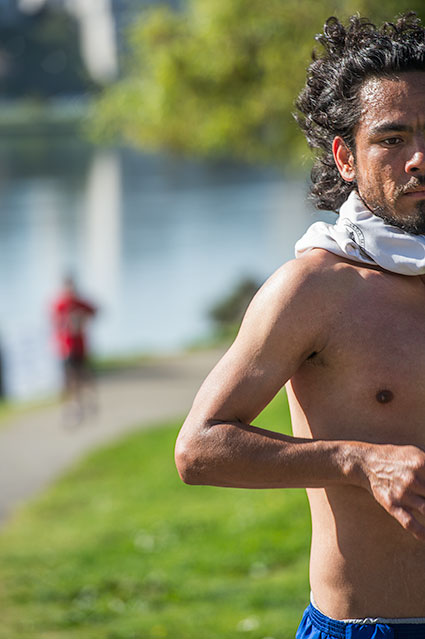 Later still. The rest of the afternoon spent working on the photographs, there are two sections, some fifty pictures. So good. About one in twenty worth keeping. At a parade or a festival I can now get forty percent, sometimes as much as sixty or seventy percent, which is off the charts compared to my first outings, percentages built over time through practice. But people forming up for a parade aren't, well, moving. Running. I suspect this moving target percentage will get better, but slowly as a tortoise eye figures out how catch rabbits, and never get all that much better.