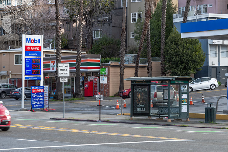 March 3rd gas prices this morning in Oakland.